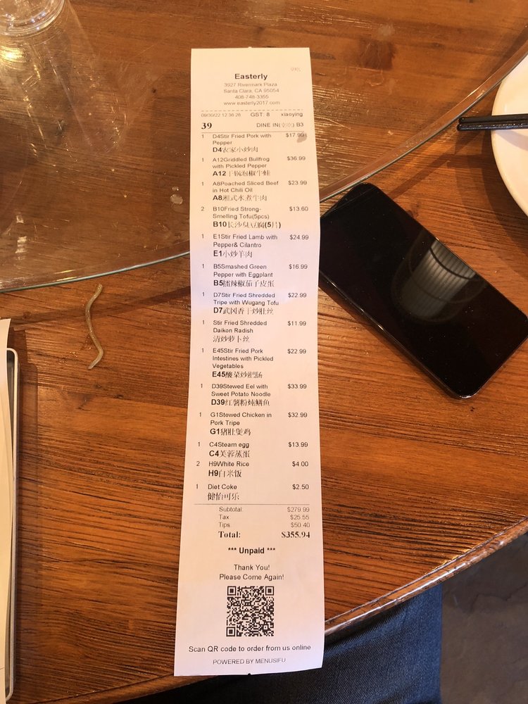 The brand Easterly is a Chinese restaurant located in Santa Clara, CA offering a wide range of dining options. Customers have praised the flavorful and authentic Chinese cuisine, with dishes like stir-fried fish and beef noodle stew receiving high praise. The restaurant provides a modern experience with an iPad menu and efficient service. The ambiance is lively, making it a great spot for families or groups. Some reviewers have noted the generous portion sizes and quick service, while others have mentioned the dishes can be oily and salty for some tastes. Overall, Easterly is a restaurant known for its hearty and delicious Chinese dishes, making it a go-to spot for those craving authentic flavors.